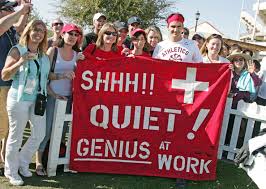 In gratitude, the most fervent Federer acolytes have come to believe their man can do no wrong. They ignore the self-complimentary quotes, that gold-lamé man-bag, the snappish "Shut up" to the French Open crowd last year, the F-bomb he dropped on Murray this year in Melbourne. This is classic jock discourse, but his fans often act as if Federer plays in a tux. When, after winning last year, Federer was quoted here saying, "Dancing with Serena, baby!" about the Wimbledon ball, some refused to believe he'd say such a thing. It was, to borrow from Raymond Chandler, like seeing the bishop kick in a stained-glass window.